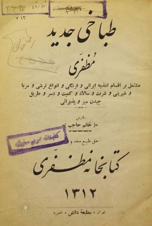 صفحه ابتدایی کتاب طباخی جدید مظفری اثر نیر عظمی حاجب